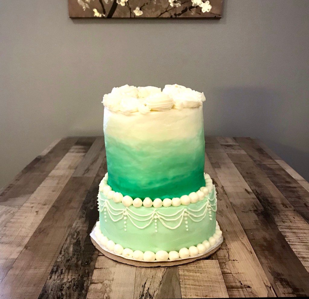 In honor of my lovely grandmother, I made a birthday cake. I think she would have liked the aesthetic, and green was her favorite color. I’m no professional cake decorator but I think it came out alright.
